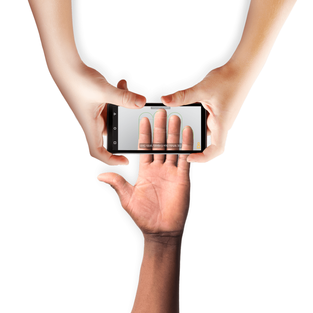 Un software innovador convierte su teléfono en un dispositivo de identidad móvil, capture imágenes de huellas dactilares de 500 ppp procesables y de alta calidad utilizando la cámara de su teléfono inteligente equipada con un software innovador de Integrated Biometrics